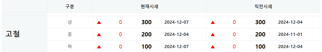 고철 시세는 거래 시 신뢰할 수 있는 플랫폼을 사용해야 합니다. 여러 업체의 고철 시세를 비교하고 가장 유리한 조건을 선택하세요. 매매 시 계약 조건과 결제 방식 등을 꼼꼼히 확인해야 합니다. 큰 거래일수록 현장을 직접 방문해 상태를 확인하는 것이 좋습니다. 실시간 고철시세 조회는 아래 사이트를 통해 확인하시기 바랍니다.