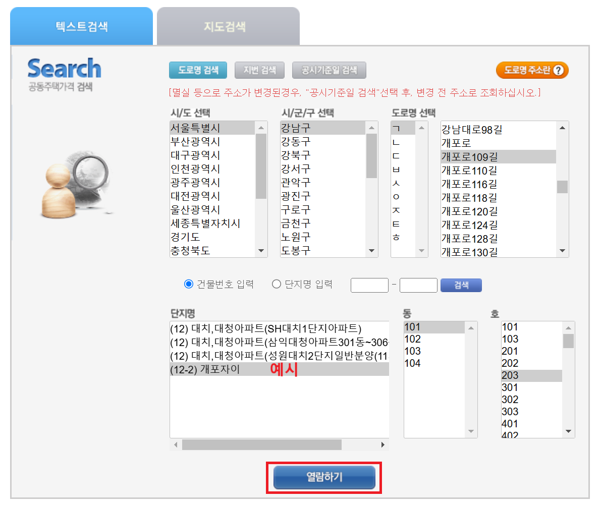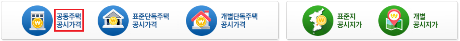 - 공동주택 공시가격 버튼을 클릭합니다.