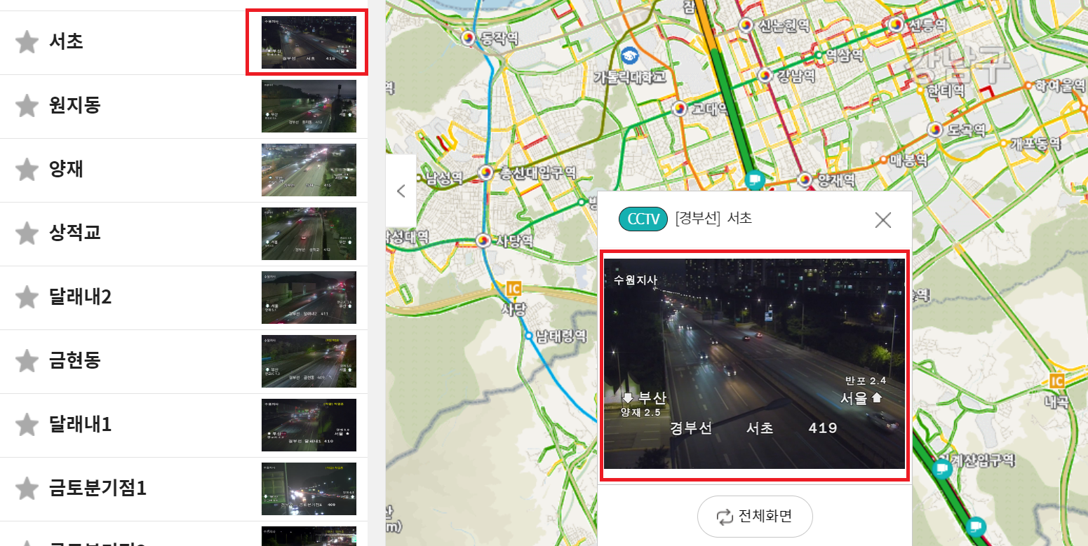 이때 서초 글씨를 클릭하면 CCTV화면이 나옵니다.