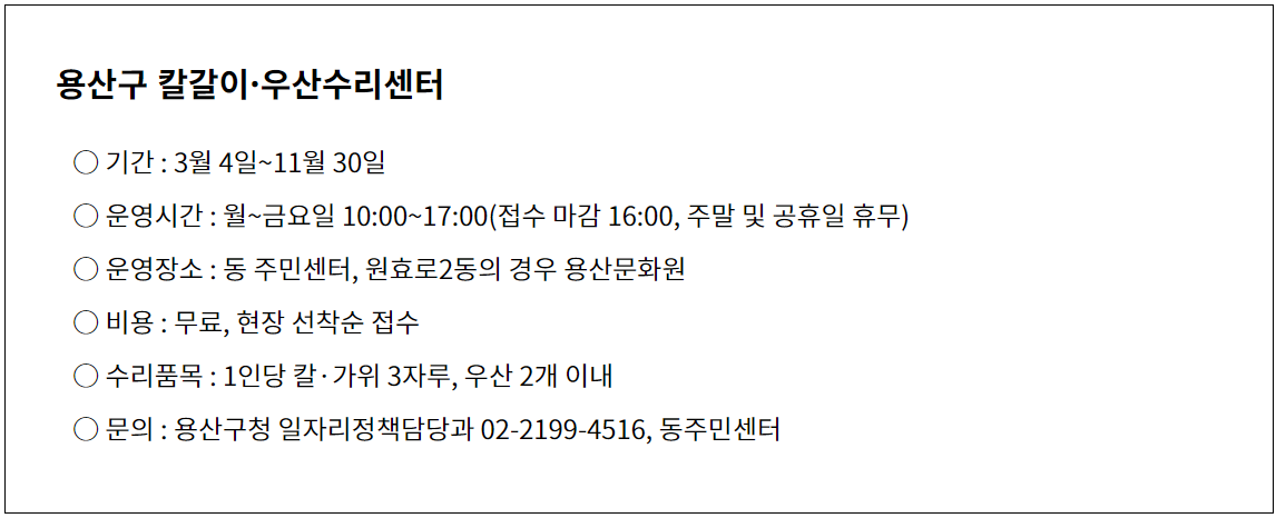 최근 지자체별로 우산 수리센터를 운영하는 곳이 늘어나고 있습니다. 우산 수리는 물론 망가진 우산 속 부품을 분리해 다른 우산을 고치는 데 활용한다고 합니다.