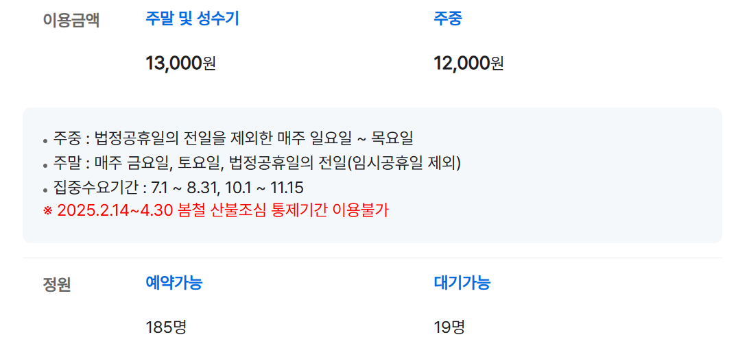 - 음식물 반입이 제한될 수 있으며, 쓰레기는 반드시 되가져가야 합니다.