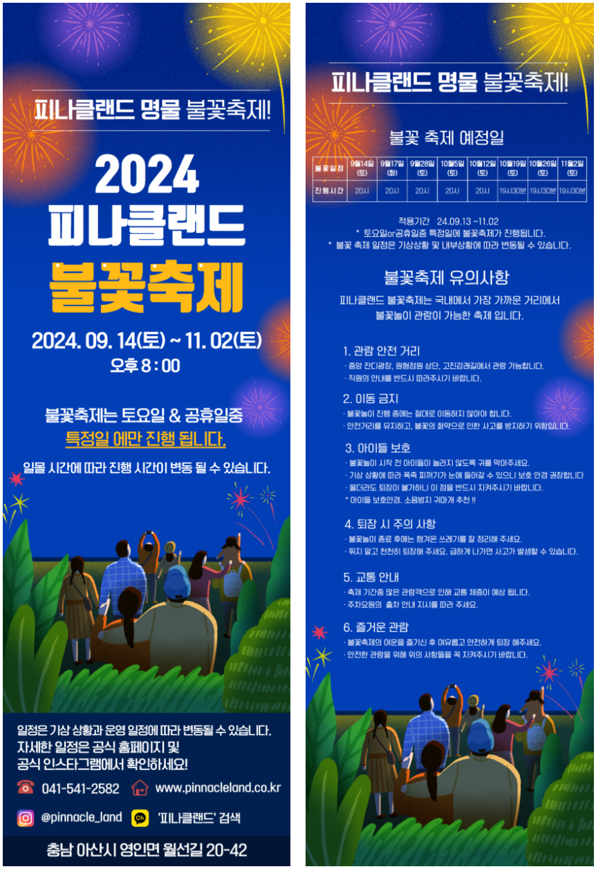 국내에서 가장 가까운 거리에서 불꽃놀이 관람을 즐기시려면 피나클랜드로 오세요.