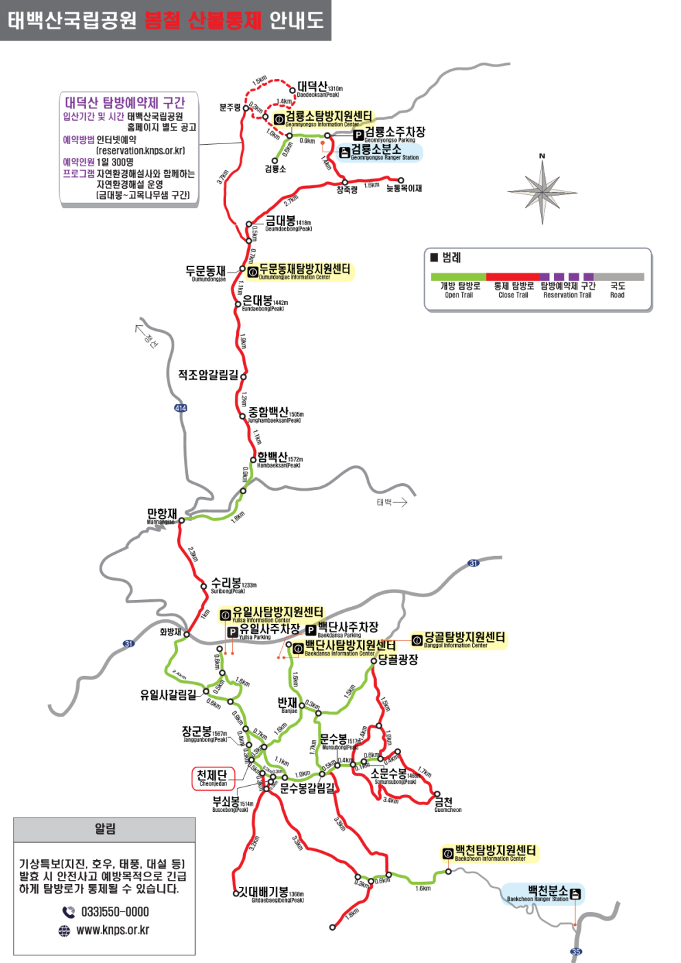 봄철 3월 4일부터 5월 15일까지는 산불 조심 기간으로 일부 탐방로 출입이 통제됩니다.