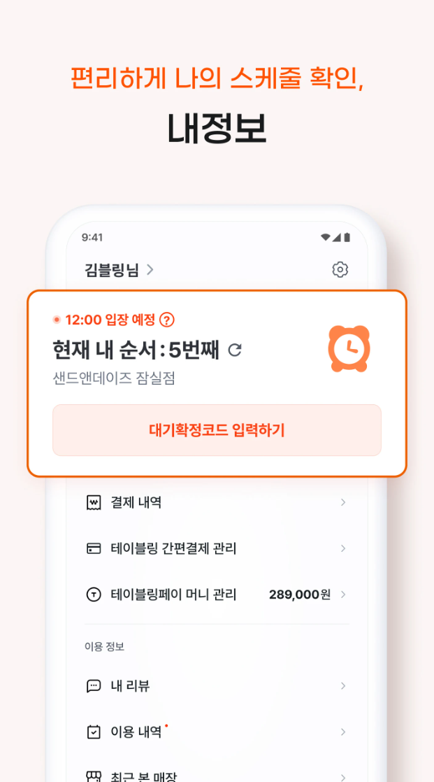 - 대기 확정 코드 있는 매장이라면 대기 확정 코드 입력하여 입장