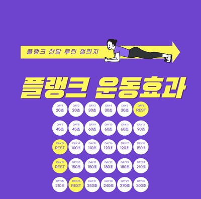 - 기본 체력 향상 : 플랭크는 전신 근육을 사용하므로 체력을 기르는 데 도움이 됩니다.