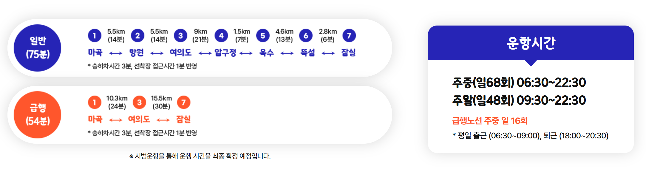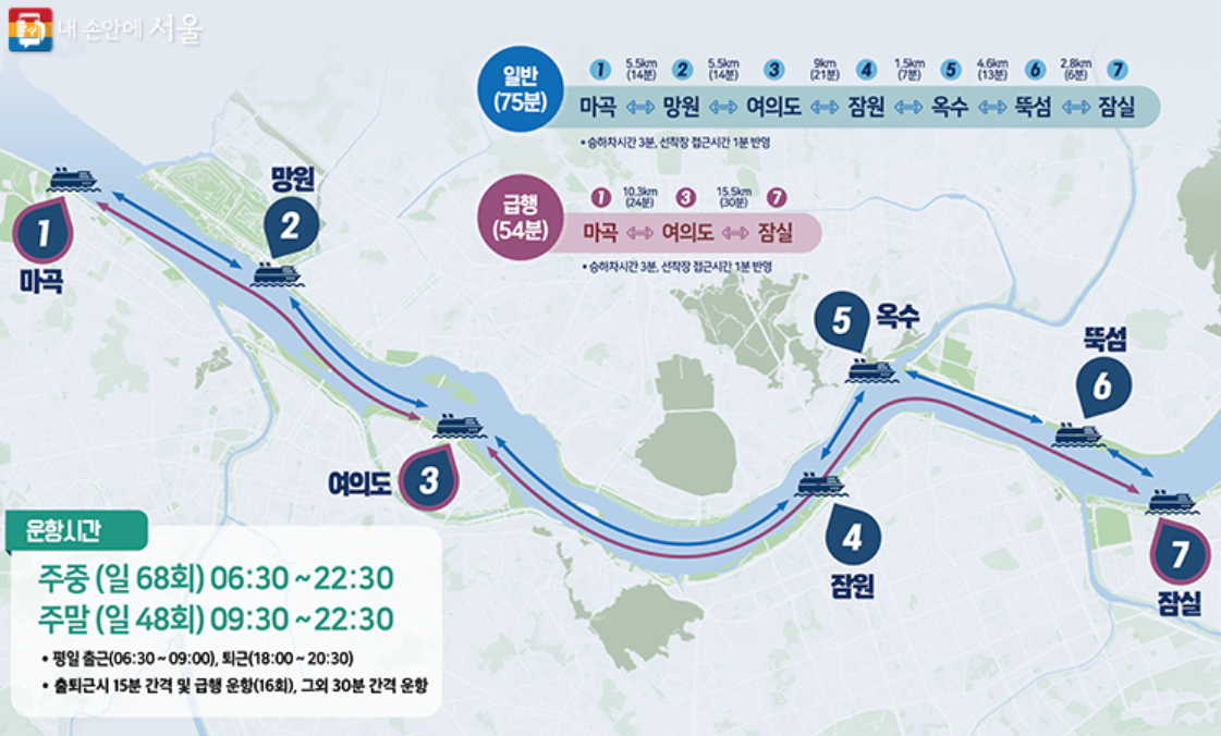 - 운행 구간 : 마곡-여의도-잠실 등 다양한 코스 운영