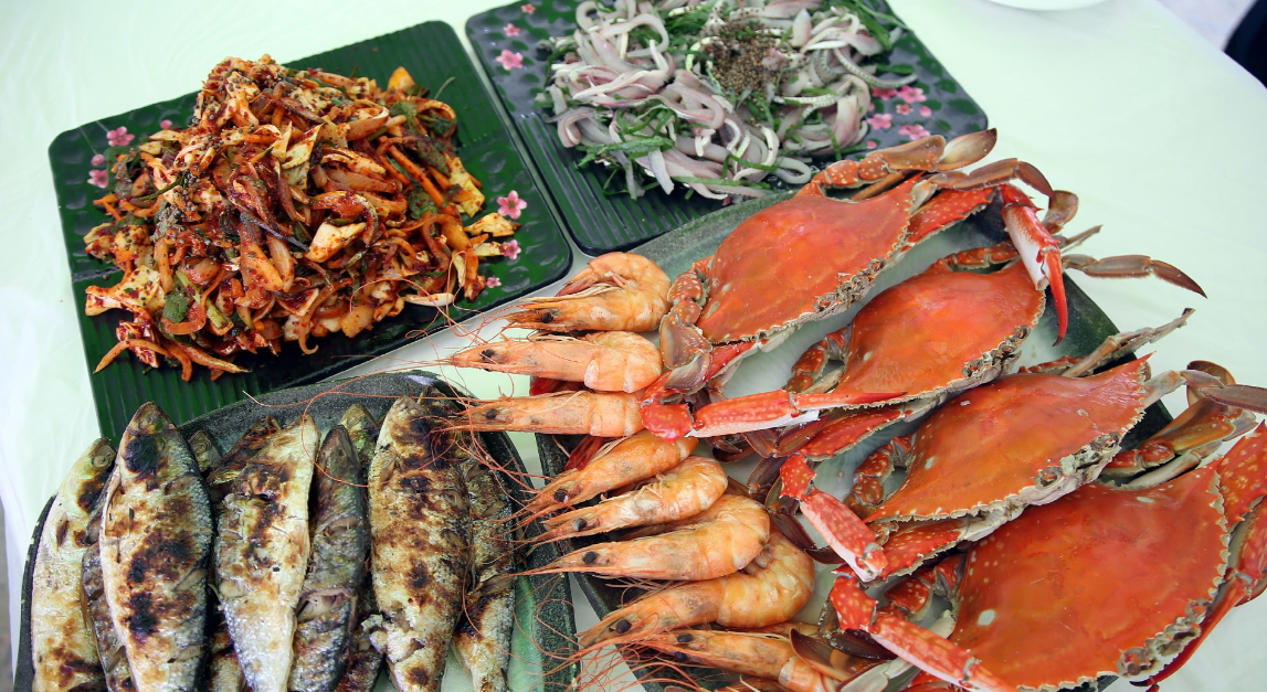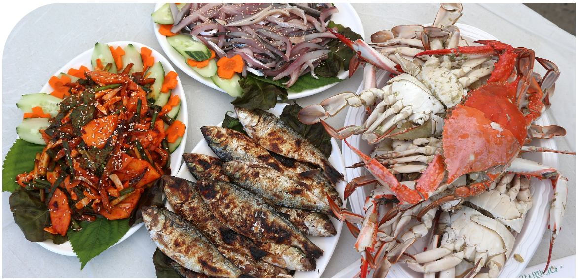 축제 기간 내내 운영되는 수산물 장터에서 신선한 전어, 꽃게를 비롯한 다양한 해산물을 저렴하게 구입할 수 있습니다. 이곳에서 구매한 해산물은 현장에서 바로 요리해서 드실 수 있습니다.