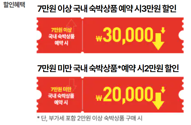 - 사용처 : 국내 숙박업소 (* 관광진흥법, 공중위생관리법 등에 등록된 숙박업소 / * 대실 사용은 불가)
