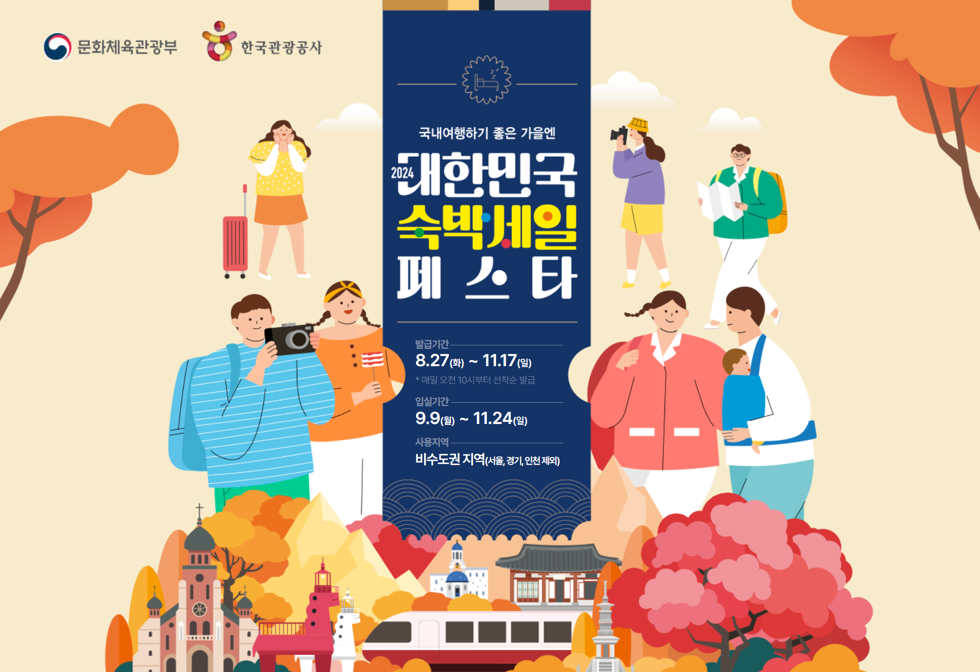 여행하기 좋은 가을철 국내 숙박업소를 저렴하게 이용할 수 있는 방법이 있습니다. 바로 숙박세일페스타인데요. 이것으로 국내여행 중 숙박시설 이용 시 저렴하게 혜택을 받을 수 있습니다. 오늘은 2024 숙박 세일 페스타에 대해 소개드리겠습니다.